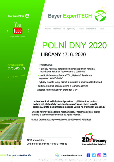 Srdečně Vás zveme na tradiční akci BAYER – POLNÍ DNY 2020 Libčany, která se bude konat dne 17. 6. 2020.