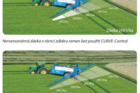 Vícenásobné držáky trysek SELEJET nacházejí své uplatnění také v kombinaci se systémem CURVE-Control z dílny firmy Müller Elektronik. Systém CURVE-Control ocení zákazník především při zatáčení či objíždění sloupů. Při zatáčení postřikovače se totiž výrazně liší rychlost pohybu obou ramen. Každý majitel postřikovače z praxe velmi dobře ví, že například ve chvíli otáčení postřikovače doleva stojí levé rameno téměř na místě. V tuto chvíli může stačit pro zachování požadované aplikační dávky jen jedna spuštěná tryska na každém vícenásobném držáku. Pravé rameno postřikovače se ale ve stejném okamžiku pohybuje velkou rychlostí ve směru vpřed a pro dodržení konstantní dávky v celém záběru postřikovače je zde nutné naopak použít všechny čtyři trysky držáku SELEJET současně. Pro správnou funkčnost systému CURVE-Control je potřeba mít postřikovač vybaven kromě vícenásob-ných držáků také již zmíněnými EDS moduly a tzv. gyroskopem. Právě pomocí gyroskopu určuje počítač rychlost a poloměr zatočení a následně vypočítává odpovídající aplikační dávku na jednu sekci. Systém pak plně automaticky nastavuje dávku přepnutím různých kombinací trysek. Výhodou takového vybavení postřikovače je opět velmi přesná aplikace, minimální poškození plodin a v neposlední řadě šetření nákladů.